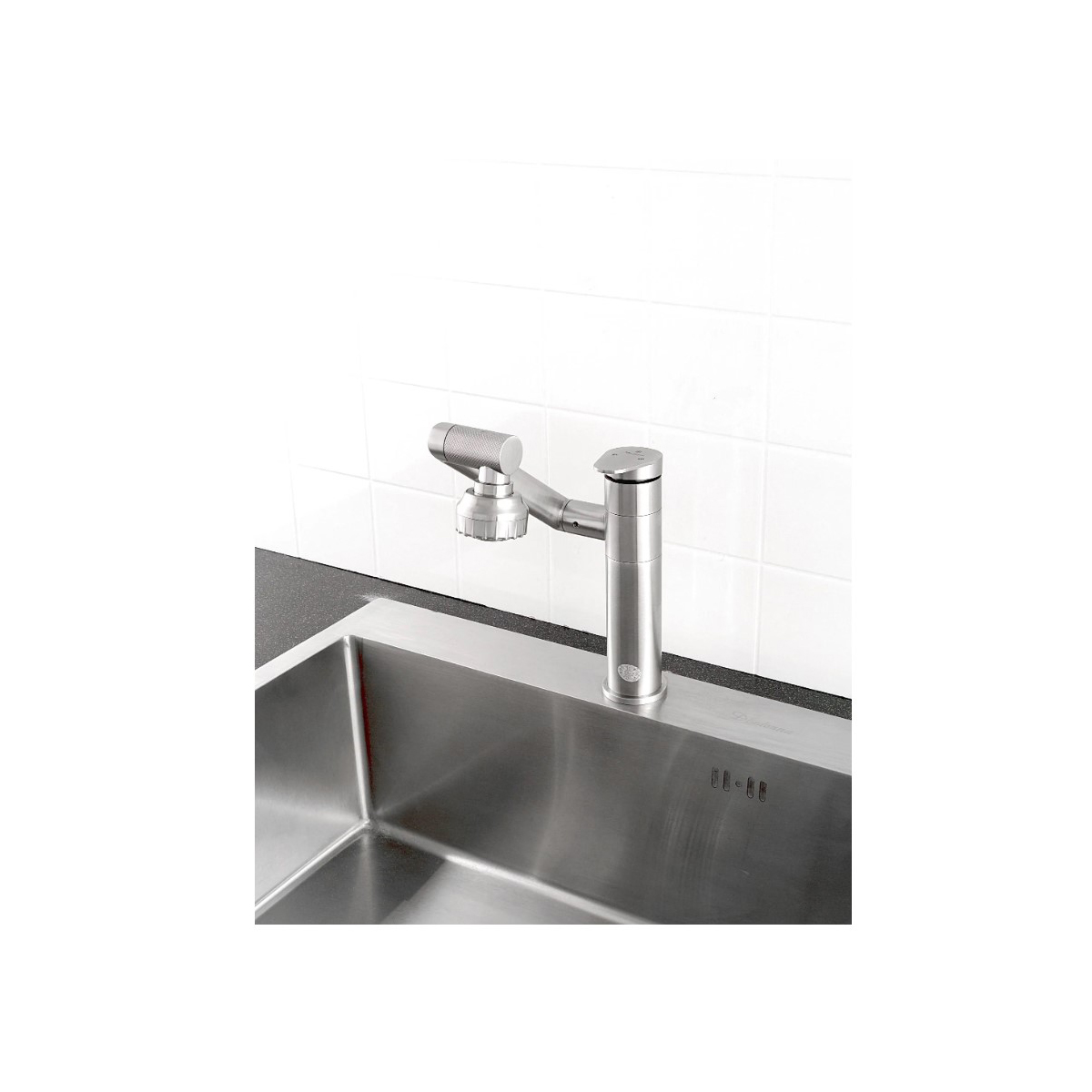 Смеситель выполнен в стильном сатиновом покрытии, которое добавляет нотку утонченности и современности в любой интерьер. Он легко вписывается в различные стили - от классического до минималистичного, подчеркивая индивидуальность вашей кухни.