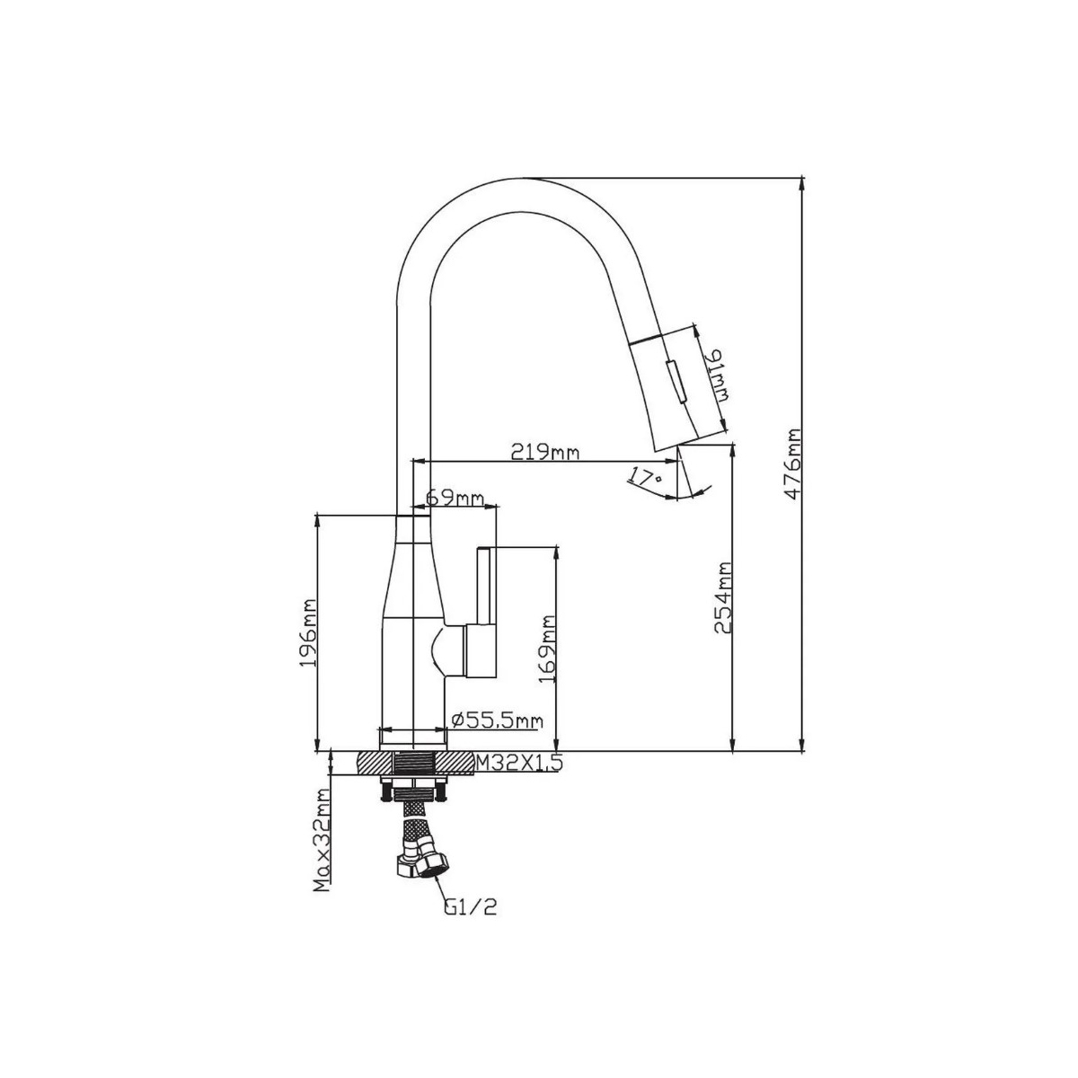 Высота излива (мм):254 p>