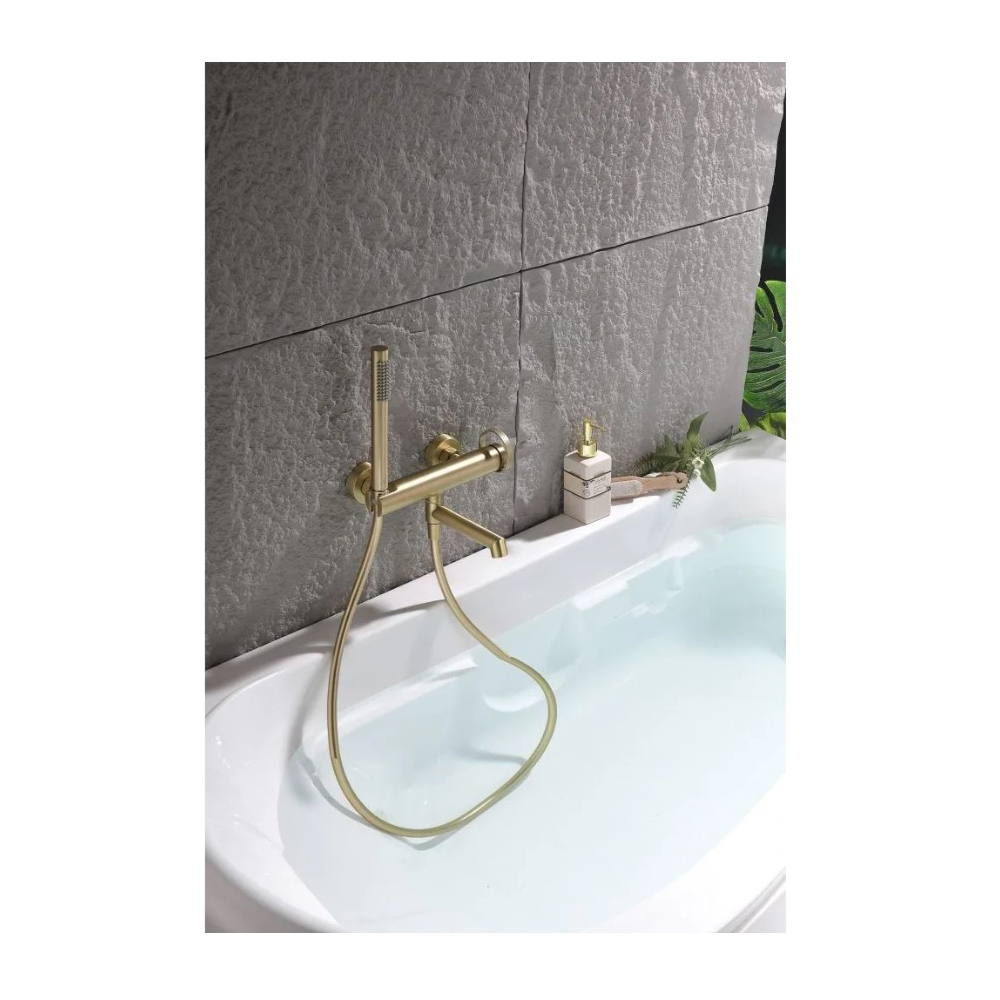 Смеситель однорычажный для ванной из коллекции 19132-S выполнен в элегантном матовом золотом цвете. Этот стильный элемент сантехники сочетает в себе современный дизайн и высококачественные материалы, что делает его идеальным выбором для создания роскошного интерьера. Матовая поверхность не только привлекает внимание, но и устойчива к загрязнениям, что облегчает уход за изделием.